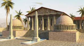 - 51-30 BCE – Caesareum of Alexandria [@31.2009°N, 29.8994°E] is established – Queen Cleopatra’s homage to Roman Dictator Julius Caesar – her partner (for whom the Gregorian calendar month of “July” was named in 44 BCE) and father to his unacknowledged son, Caesarion. The Caesareum [depicted] is the site where the twin Tkhn of Tuthmose III were moved to in ancient Egypt & redesignated as “Cleopatra’s Needles.”