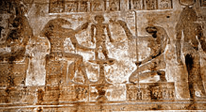 Upon the inner walls of Ipet Resyt – “the southern sanctuary” built for God/dess consorts Amun’Re/Mut known today as the Luxor Temple in Egypt – lies the 1350 BCE origin of the biblical ‘Annunciation.’ According to John Anthony West [click picture for video: link @ 1:17:20], surrounding transcriptions of the communication depicted taking place between Amun’Re and his consort goddess Mut indicate that in this conversation Amun’Re is informing his beloved that she will give birth to a divine son/savior. Their conversation is furthermore linked to the ancient Mysteries of Ausar-Auset-Heru – aka the “Holy Trinity” – and their various challenges against the shadow, Set (predatory god of the wilderness, chaos, violence, foreign oppressors, illness, perversion…) aka biblical “Satan.”