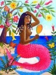 On the other hand, as the river orisha Oshun, she is associated with sensuality, playfulness, fertility, love and beauty. Both are aspects of the same goddess archetype which, according to followers throughout the African world, unite in the figure of Mami Wata – a figure who is commonly depicted as a mermaid holding a mirror and/or a fan. All three orishas prefer the color gold, interchangeably with yellow.
