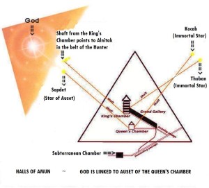 They associated Sopdet with Auset [“Isis/Venus”] – Divine Feminine consort to Ausar [“Osiris/Orion/Pluto”], Divine Masculine counterpart to Her Soul. And within the Great Pyramid of Giza, there are shafts leading outwards from separate Queen & King’s Chambers which cyclically come into the most pristine orientation to their respective stars [Sopdet & the Hunter’s Belt] in a simultaneous occurrence that activates the annual opening of the Lion’s Gate Portal